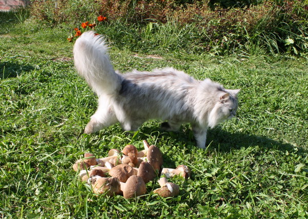 Специально размещаю фотку только самых маленьких грибов, чтобы пощадить самолюбие некоторых здесь присутствующих. Для соразмерного видения размеров грибочков кладу фотку рядом с 2-3 месячным котенком. Все собрано чисто в рабочее время, что несколько поднимает ценность результата.