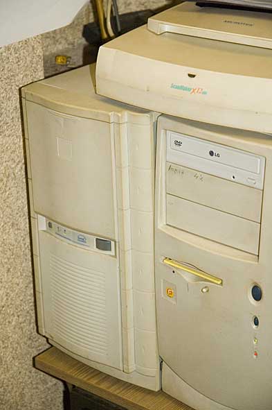 Тут считают и забирают деньги... За мониторам прячется известный на многих форумах менеджер.... На мониторе и вокруг - образцы сувенирной продукции... В шкафу - полиграфические образцы... Скромненько в углу тот самый фтп-сервер, перекачивающий огромные объемы файлов.