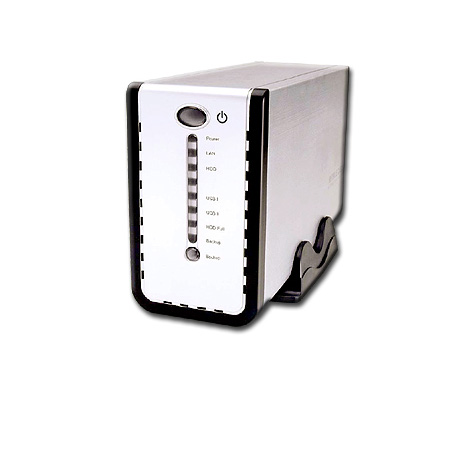 Diagnostic LEDs : - Power (Blue) - LAN (Green, Amber) - HDD (Amber) - USB I, USB II (Green) - HDD Full (Red) - Backup (Amber)