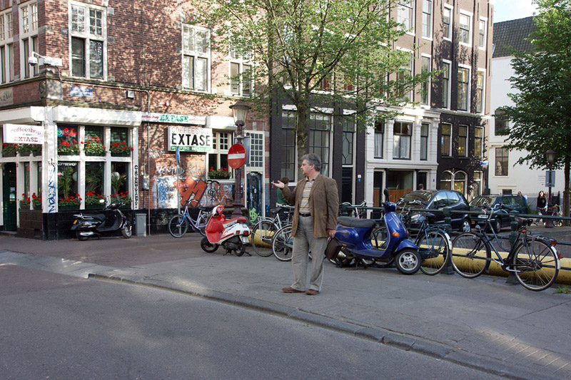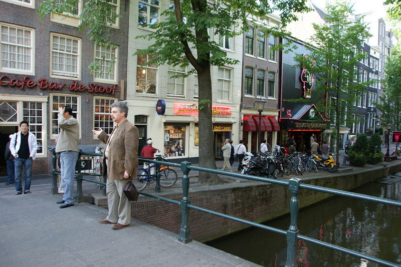 Амстердам. Улица красных фонарей. Вдалеке за мостиком видны двери, над которыми светятся красные лампы. Там лучше всего и подают, Кирилл...