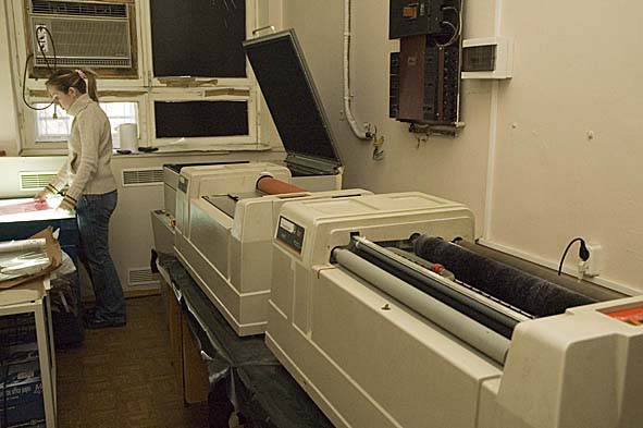 Процесс изготовления цветопробы... И пленочная "мыльница" - цифровой снимал... Работа дизайнера для души - ну, куда без свиней-то... Уголок самообразования с легальным софтом...