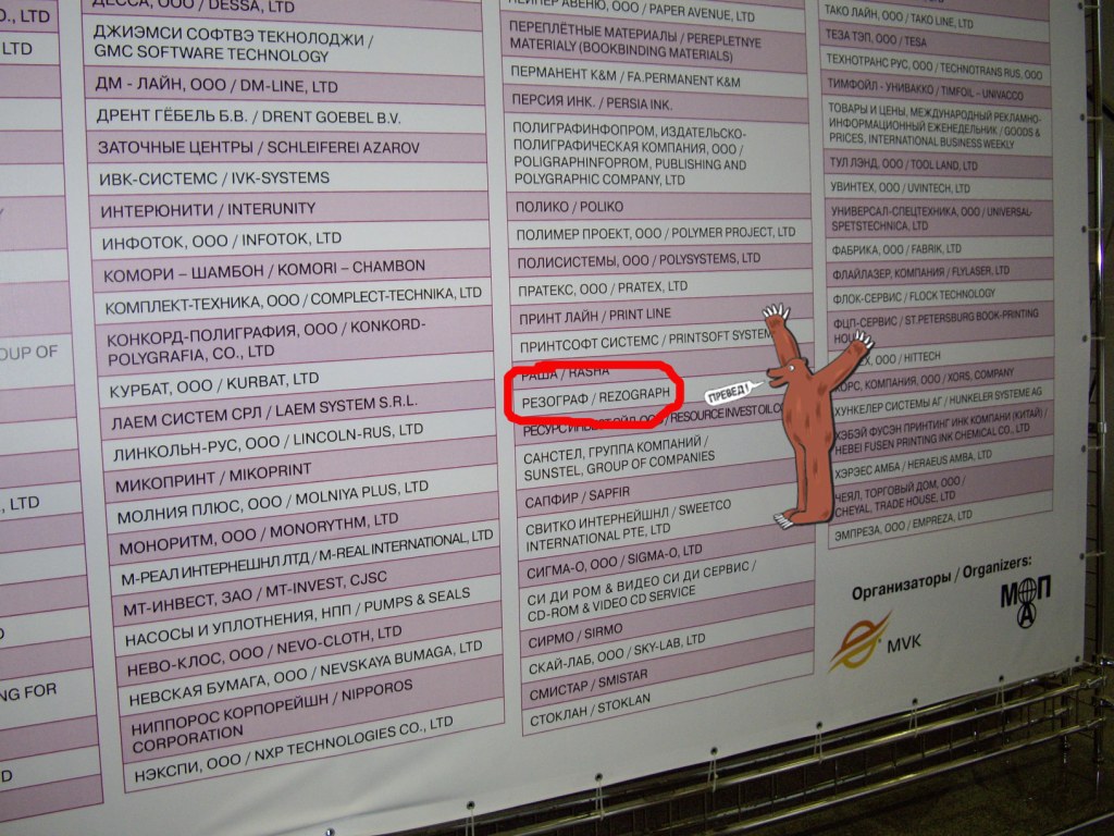 Мне кстати ПА пообещал на след. Полиграфинтер за 300 долларов стенд оформить, включая разработку логотипа. Ждемс... А то заколебал уже посетитель вопросом "Кто пустил колхозников в большой город?"