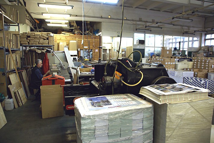 Следующий в нашей программе - высекально - тиснильный цех. Здесь мы видим стоп - цилиндровые и тигельные прессы, которые неустанно и круглосуточно высекают, конгревят, блинтуют и тиснят.