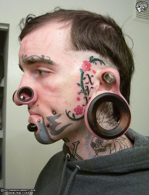 Теперь он такой... Пользуясь тем, что у него на лице появилось большее количество дырок, чем дала мать-природа, он решил поставить в них пикколо разных цветов и размеров, разместив у себя на лице рекламу комплектующих для календарей.
