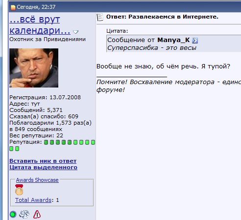 __________________ Помните! Восхваление модератора - единственная цель Вашего пребывания на форуме!