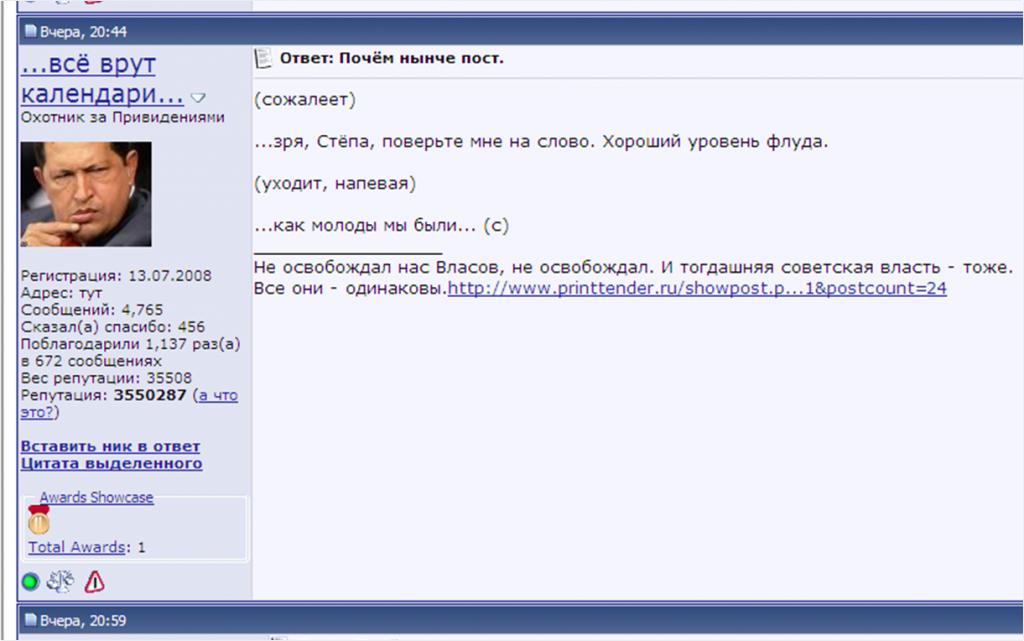 Awards Showcase Ответ: Почём нынче пост. (сожалеет) ...зря, Стёпа, поверьте мне на слово. Хороший уровень флуда. (уходит, напевая) ...как молоды мы были... (с)