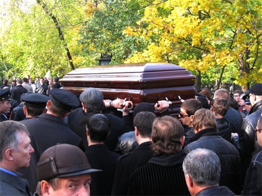 Несмотря на ограничение доступа рядовых граждан России на похороны Япончика, сценарий похоронного ритуала воров в законе хорошо известен: На грудь возлагается огромный целовальный крест. Этот специальный крест, к которому прикладываются верующие после службы и потом он кладется на перстол в алтаре и лежит на нем поверх Евангелия до следующей обедни. Согласно воровской мифологии, на Том Свете вора сразу же попытаются скрутить мелкие бесы и утащить в пекло минуя Суд. Этим крестом Вор будет отбиваться от бесов как ниндзя нунчаками. Обычно к такому кресту крепиться и цепь.