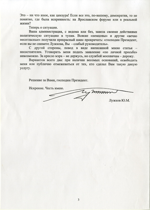 Лужков сейчас конечно снимается бесчестно. Травля как в старые добрые времена. (Кстати, спалились рядившиеся под независимых) Но то, во что он превратил Москву, за всех этих церетели, за снос домов прошлых веков, создававших неповторимый облик столицы, за точечную застройку, за втыкание гипермаркетов в перенасыщенные районы, за Ресина, за Батурину, за....... За это за все я считаю его тоже злом. Какое из 2х зол меньшее? Как сказал товарищ Сталин - оба хуже(с) PS его все устраивало, пока сам пользовался безграничными возможностями. Теперь он сам попал под их жернова и вспомнил про демократические принципы. А хрен та!!!