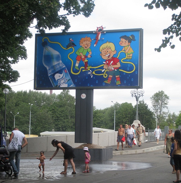 Re: Креативная реклама в картинках В билборд вмонтирован шланг, который обливает прохожих водой)))