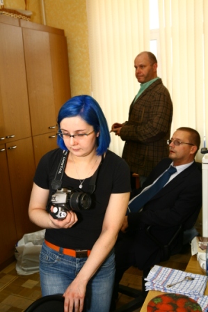 Маня не знала и не могла знать, что существует практика фотографирования фотографа... пока она трудилась фронтменом фотосессии, за её спиной свою работу делали не столь яркие люди. Народу было много, все были чем-то заняты, но с Мани глаз и длинных обьектиффчегов никто не спускал, звезда-с... Когда же звезде надоело, и она ушла - участники массовки тепло попрощались друг с другом.