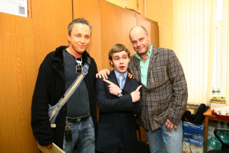 Ой, не могу! Это снято как раз в момент скучания братцев. Когда приключилась небольшая пауза и все, кто хотели уже стребовали слова и видео с Крестовских, угораздило меня им ляпнуть в тишине что-то типа "Ну, что еще с Вами сделать, ребяты?". Очкарик (опытный, видать, товарищ) тут же ответил что есть у него одно предложение... За что и получил вспышкой в глаз. Нда. Отлично получилось)))