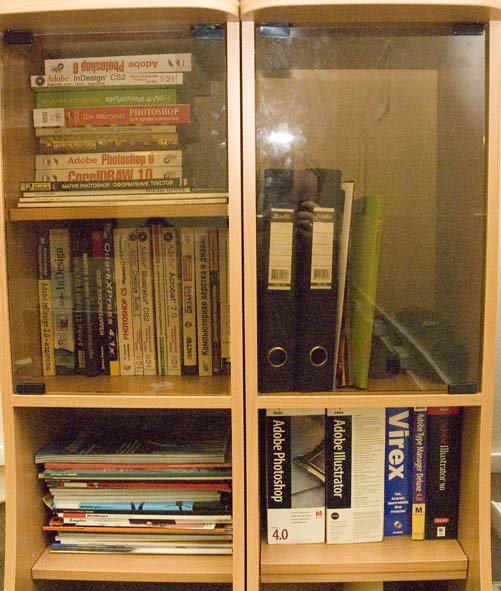 Процесс изготовления цветопробы... И пленочная "мыльница" - цифровой снимал... Работа дизайнера для души - ну, куда без свиней-то... Уголок самообразования с легальным софтом...