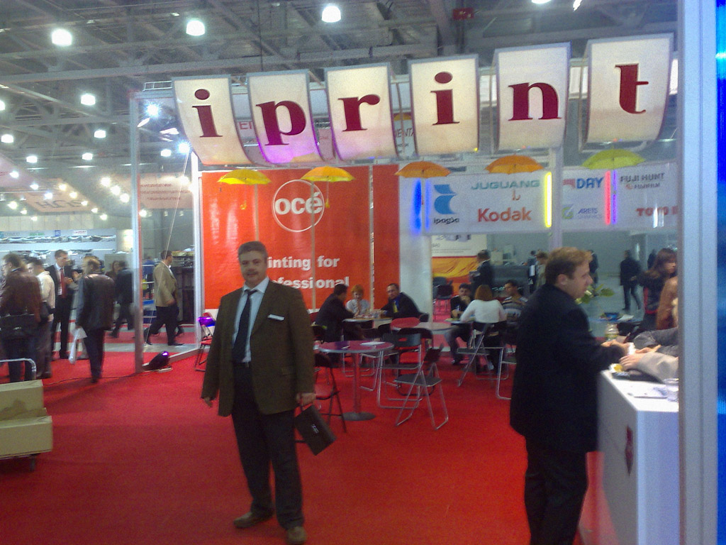 По допечатке — кот наплакал. Даже СТР и прочей ерунды почти не было. А ведь раньше — сканеры, мониторы, планшеты, станции всякие рабочие, то, се. Ладно, я понимаю — сканеры уже так не нужны, но ведь и значение допечатки в целом на выставке как-то понизилось. А ведь все эти хейдели-шмейдели без хорошего препресса, т.е. препринта — туфта железная. У Мак-центра в центре (упс — тавталогия) новые Аймаки. Экран у них блестящий как зеркало — от бликов в глазах рябит. Вся допечатка свелась к идиотским айванам (у них внутри корпуса, вообще, что-нибудь есть?).