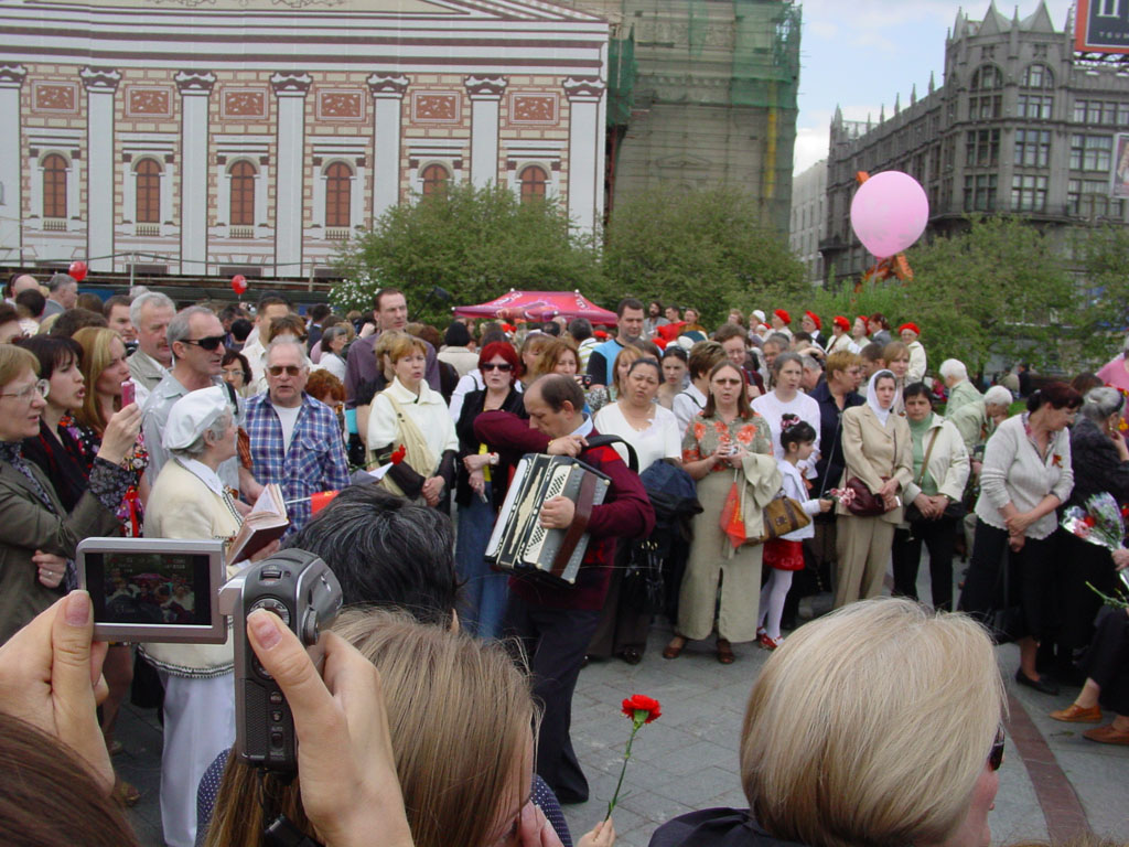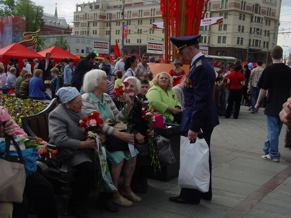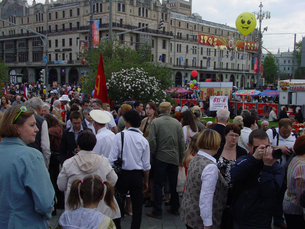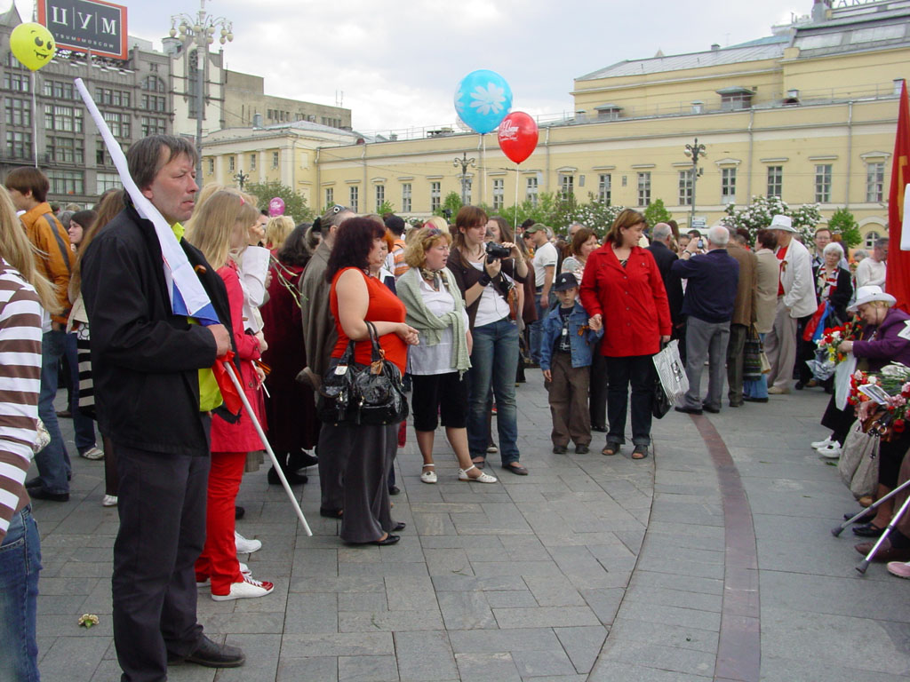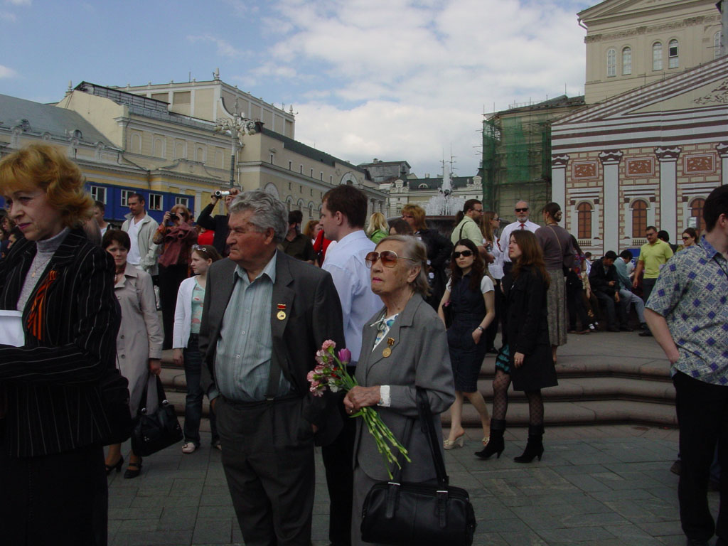 Пробрался я все-таки к Большому, даже гаишники не смогли остановить, хотя и пытались. Народу было очень много, больше, чем в прошлые годы, а вот ветеранов, разумеется, стало меньше, говорили, что в четыре раза.